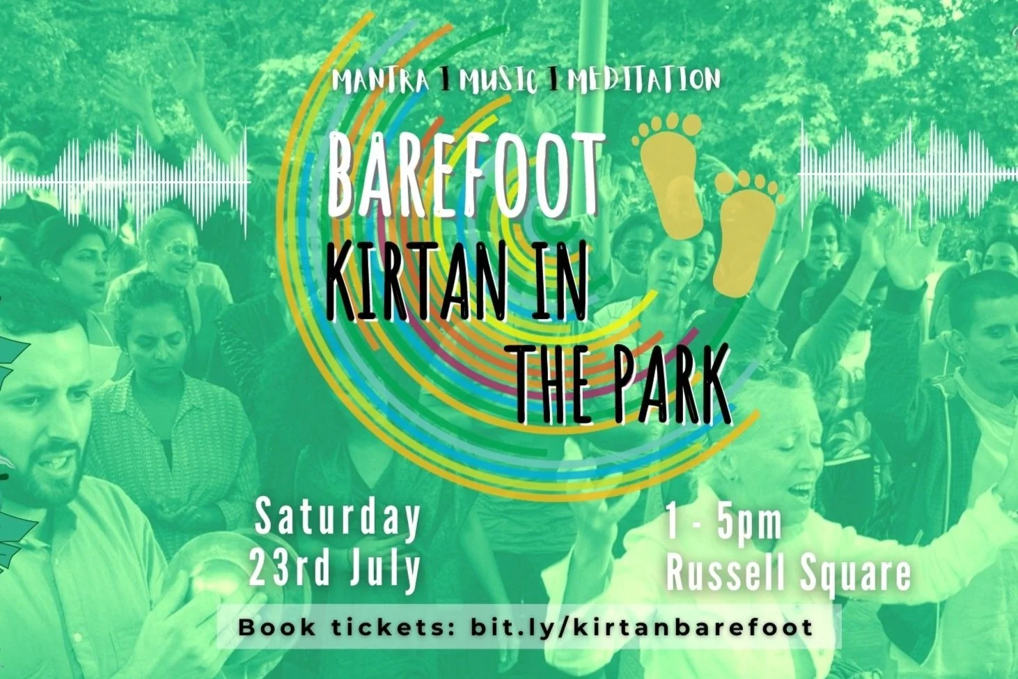 Come and join Barefoot Kirtan in the Park on Saturday, 23rd July to sing and dance with abandon on the grass of Russell Square and connect with a like-minded community of kirtan lovers.